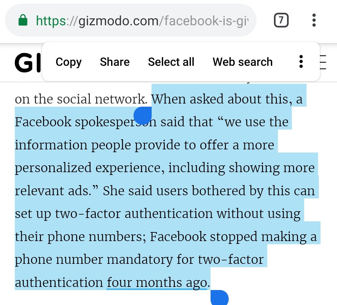Today a new issue came to light, yet another egregious breach of trust that involves 2-factor authentication (2FA) - the mechanism to make logging into your account more secure, by (in the case of FB) providing your phone number (which is not the best 2FA method):